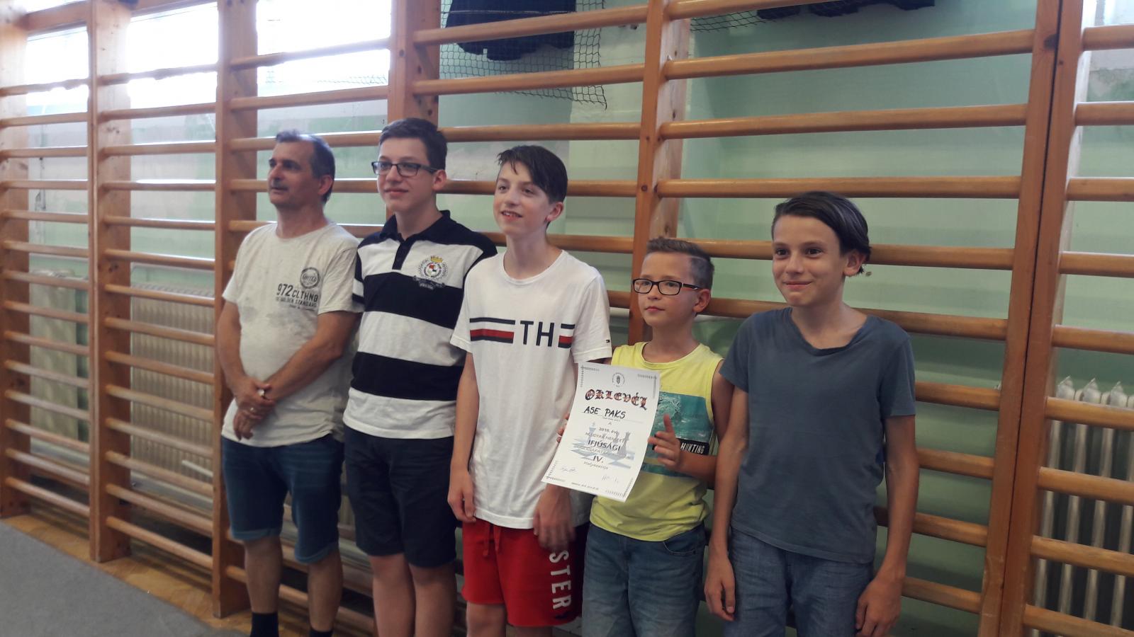 Az Atomerőmű SE fiataljai a 4. helyen végeztek az év legrangosabb csapatversenyén! A négy győzelem, egy döntetlen és két vereség kilenc pontot ért. A bajnoki címet a tapolcai fiatalok szerezték meg. A négy fős csapatok tornája nem indult zökkenőmentesen számunkra. Az egyik táblán lánynak vagy 12 éven aluli ifinek kell játszania minden mérkőzésen. A kezdés előtt 1-2 nappal kórházba került a kis ifink így Noéminak kellett készülés nélkül beugrania, hogy egyáltalán részt vehessünk a tornán. Szerencsénkre Tamás gyorsan meggyógyult és a 3. fordulótól már vállalta a játékot. A csapat lassan lendült bele a játékba, az utolsó fordulóban az első számú kiemelt MTK ellen sikerült győzni. Egyénileg Losonczi Marci emelkedett ki a csapatból, az előző évhez hasonlóan ő volt a csapat legbiztosabb pontja. Hat játszmából 5,5 pontot szerzett. A csapatunk továbbra is az egyik legfiatalabb gárda volt a mezőnyben. A következő 2-3 évben az éremért fogunk küzdeni, ha sikerül együtt tartani a gyerekeket. A részletes végeredmény itt található: